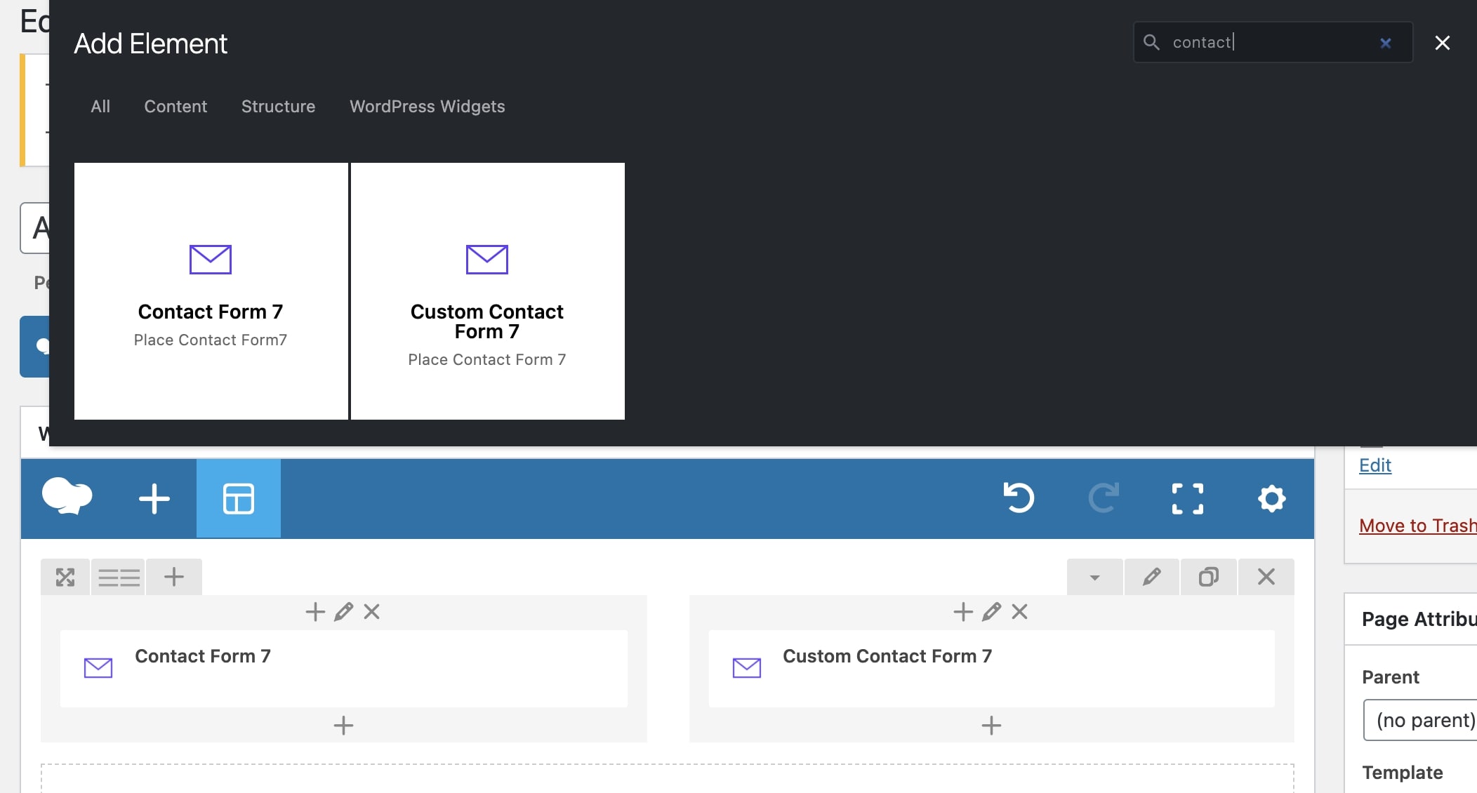 Note that if you need columns layout, you still have to use HTML markup under Contact > Contact Forms where you create your forms. Just use the classes you can see in Contact Form 7 samples.