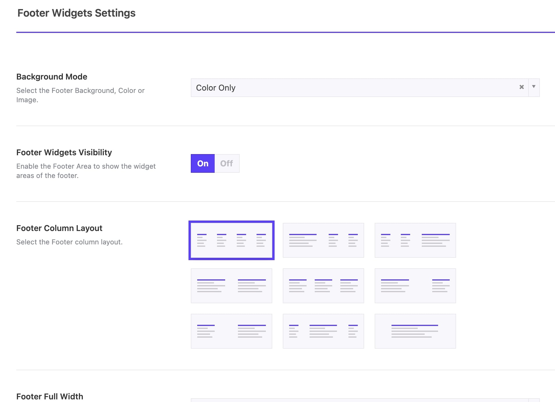 Footer Column Layout: Select the footer column layout