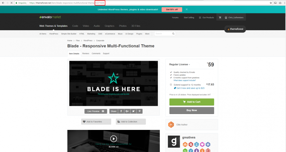 In case you are a developer/web designer and you want to update easily your client’s installation but at the same time restricting access to your own/other purchases, you could use the single item token option instead. Having already generated an Envato personal token, you should click on the Add Item tab and use your token along with the specific numerical ID found at the related url of the product item. In that way update messages will appear only related to your preferred item.