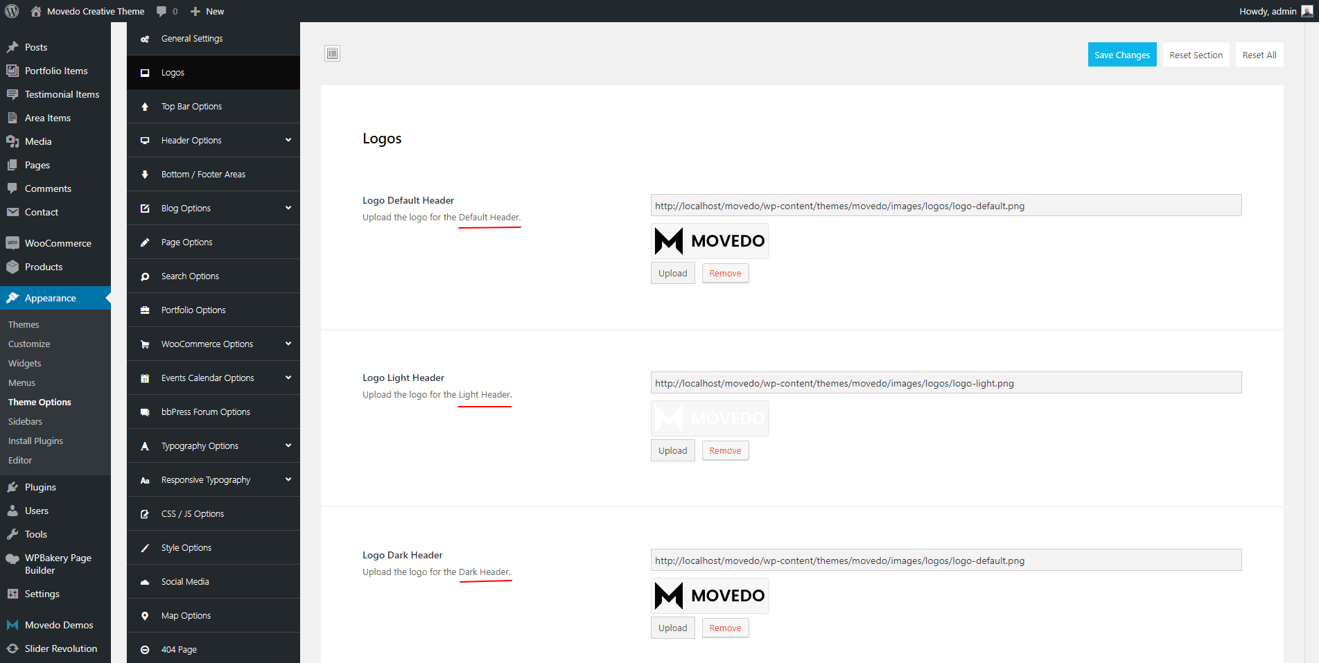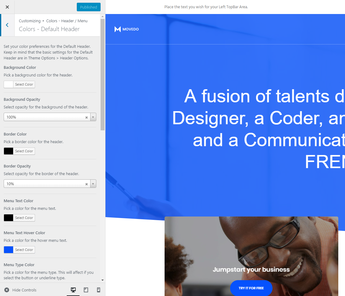 Besides the Header layouts and possibilities, Movedo comes with 3 different header styles in order to cover any need. You can style, add logos and use any of the 3 following headers: