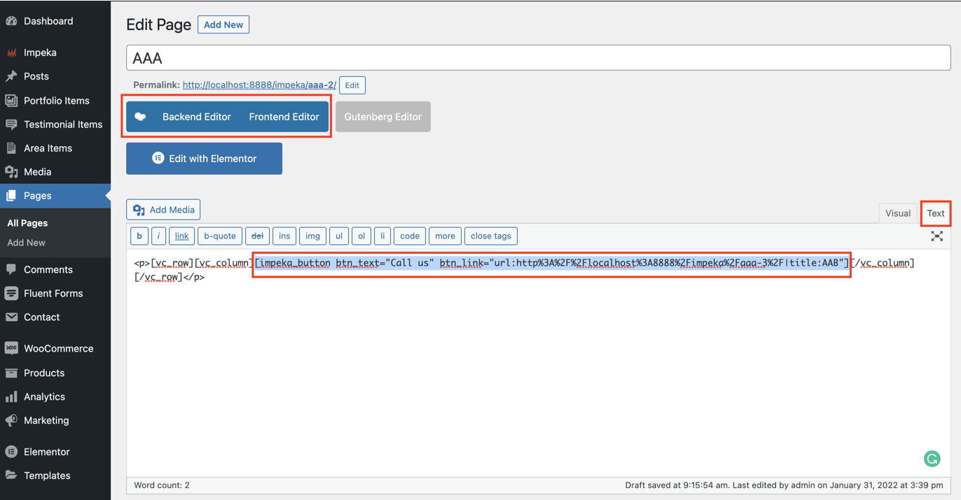 Then copy only the button shortcode (not the row, column shortcode) from Classic Mode – Text