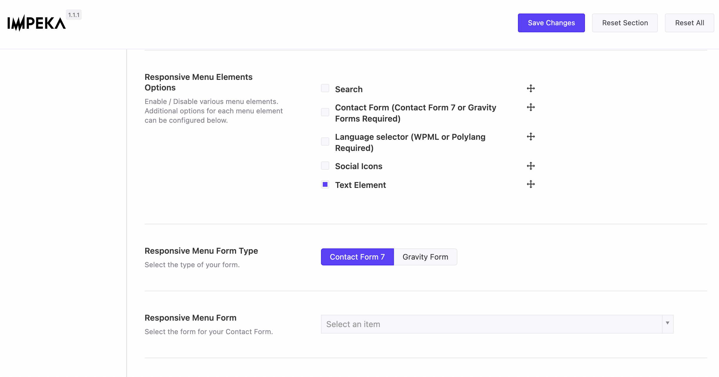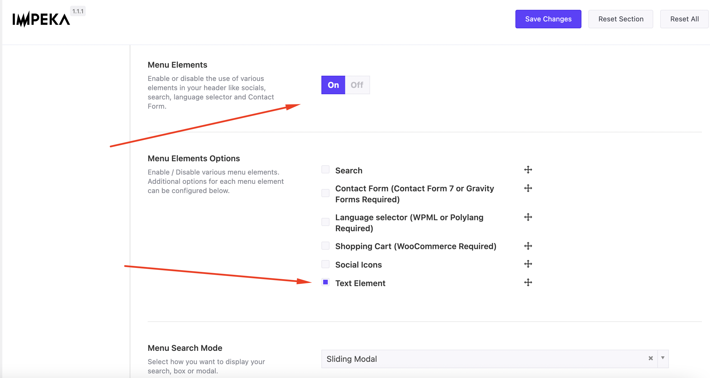 Now, enable Menu Elements and select the Text Element on Menu Elements Options.