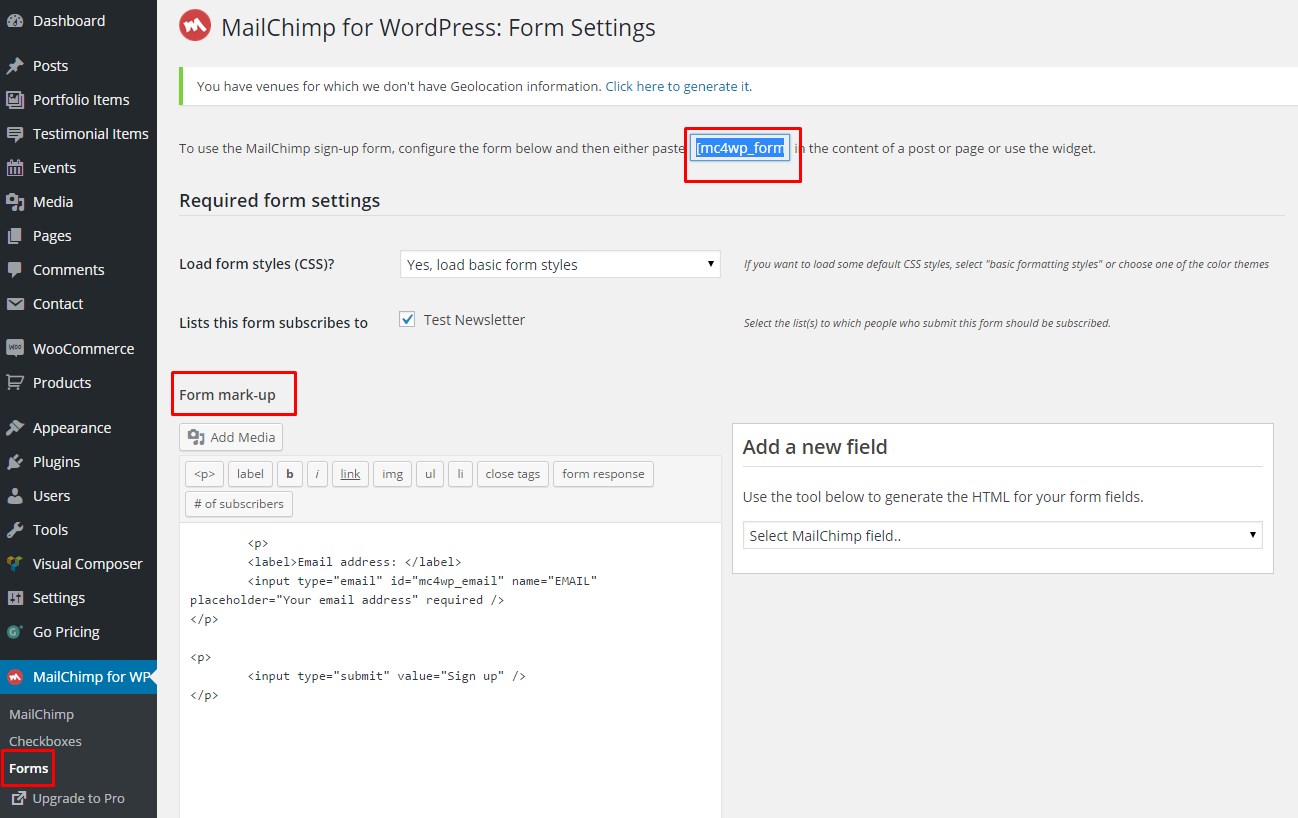 Finally, you can use a Signup Form using the Mailchimp form with the shortcode [mc4wp_form] in any main content area you wish.