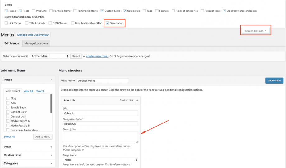 How to add Description in Menu Items
