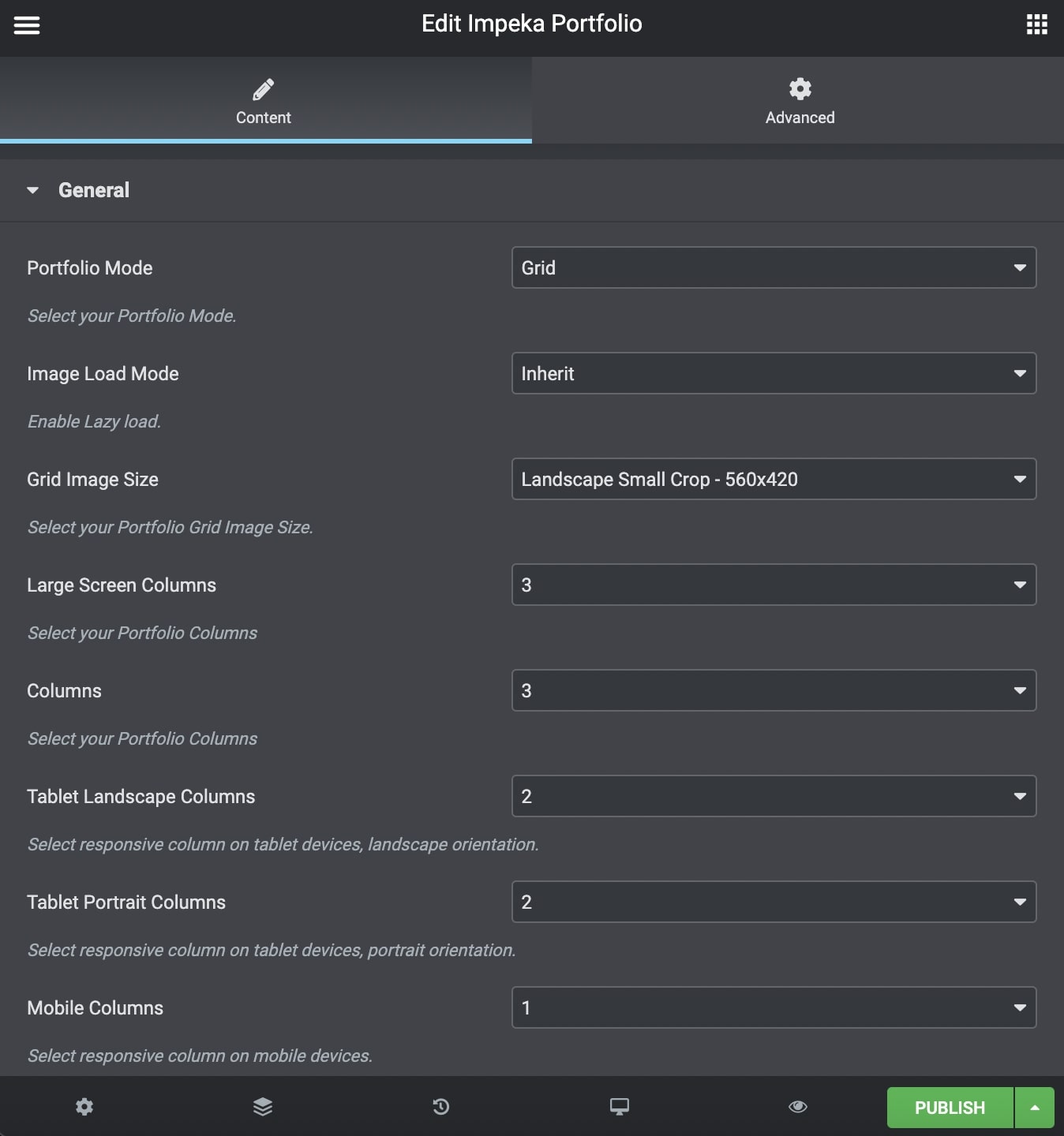 Large Screen Columns: Select the portfolio columns you wish to have on large screens.