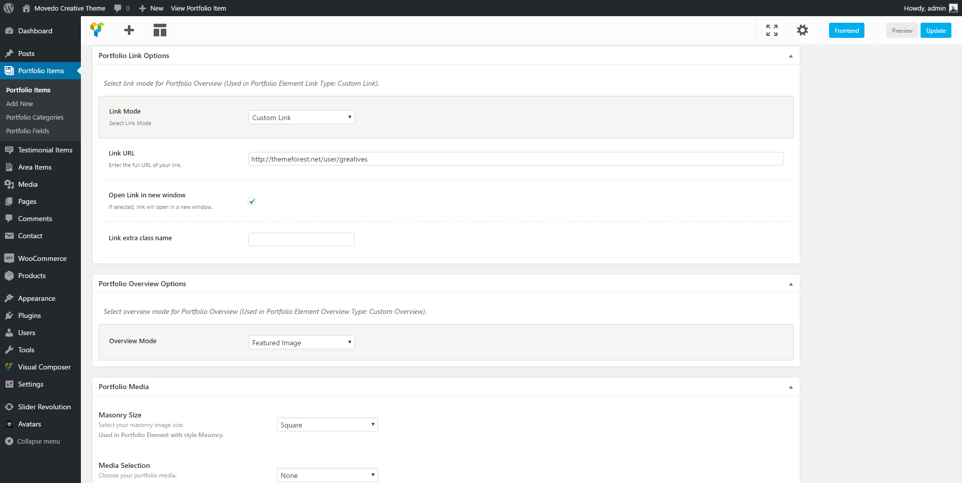 With the most of the options above, you can override any options you have set in Theme Options > Portfolio Options. This means that you can handle individually each one of your posts.