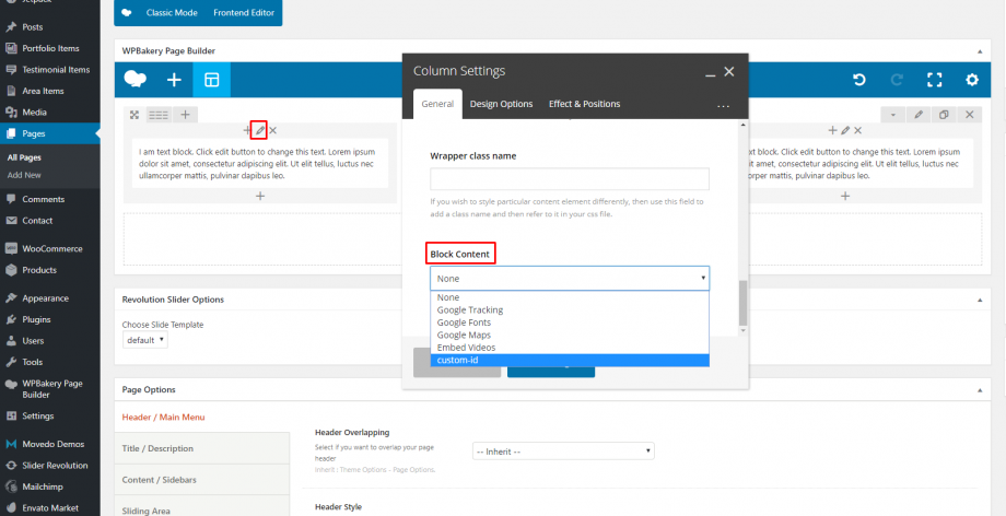 Additionally, we have added custom blocking options that can be set by the Privacy/Cookies Options and have the ability to control your content by column. All you have to do is to create some custom blocking IDs. For this example we have a set a blocking ID named custom-ID.