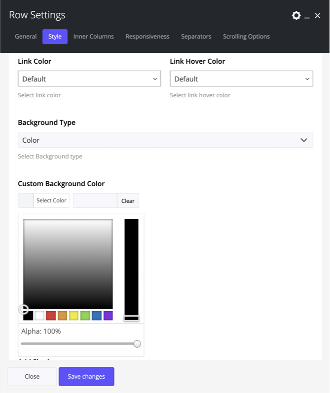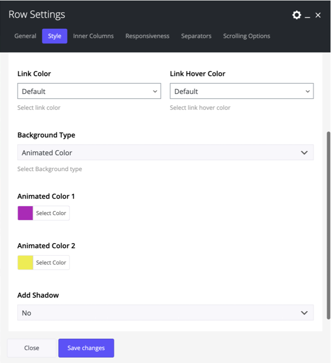 Set 2 Custom Background Colors for the row via the color pickers. With this Animated color effect you’ll have an impressive color effect in your row/column.