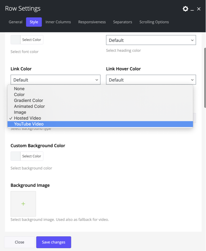 This is where Impeka offers its main options for the row backgrounds. So, upload the image you need and check the following options: