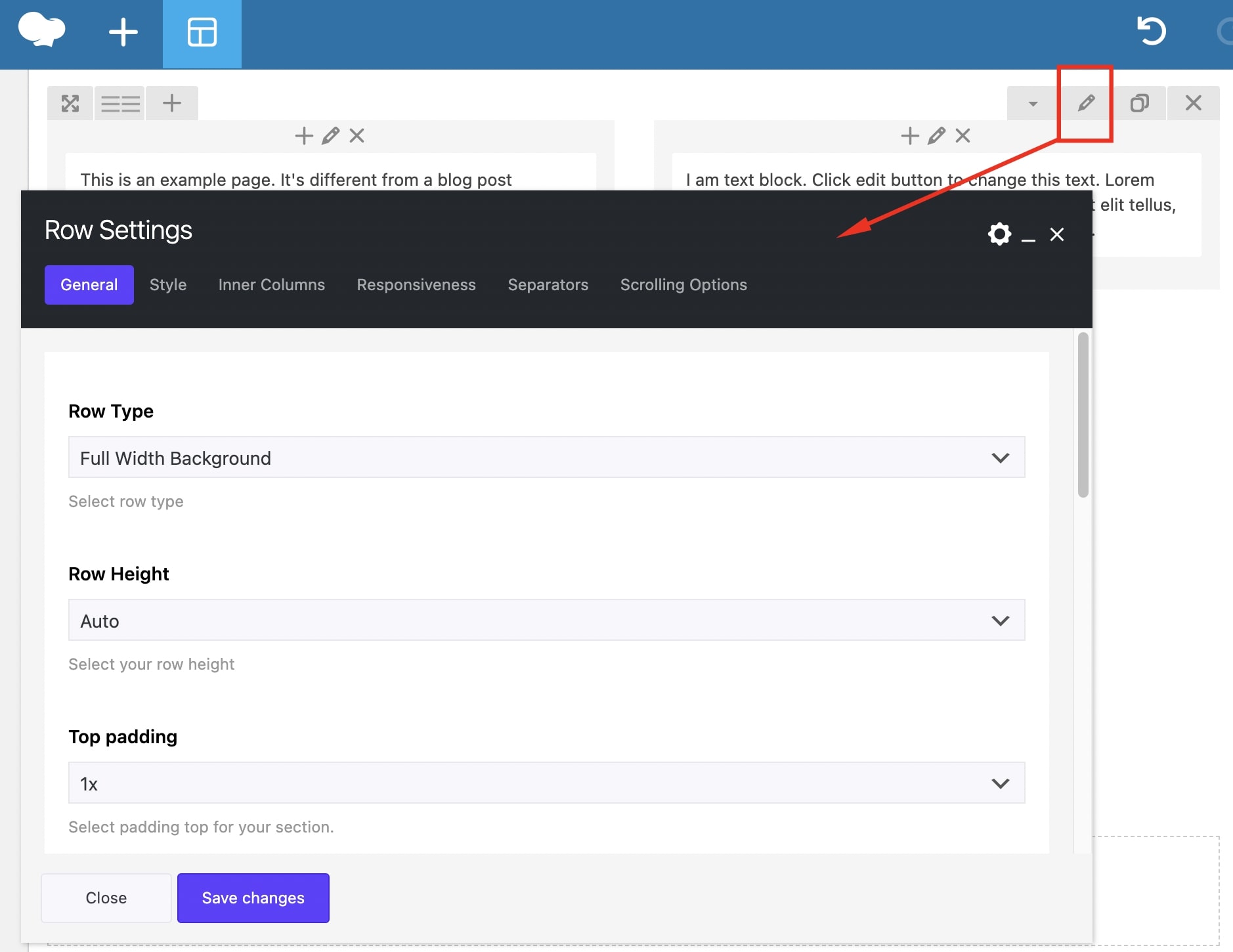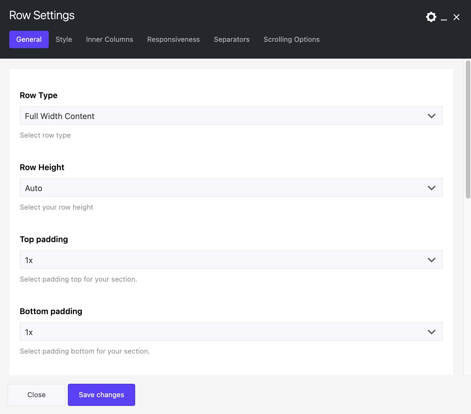 - Full Width Content– the content of this row will be stretched and not just the background.