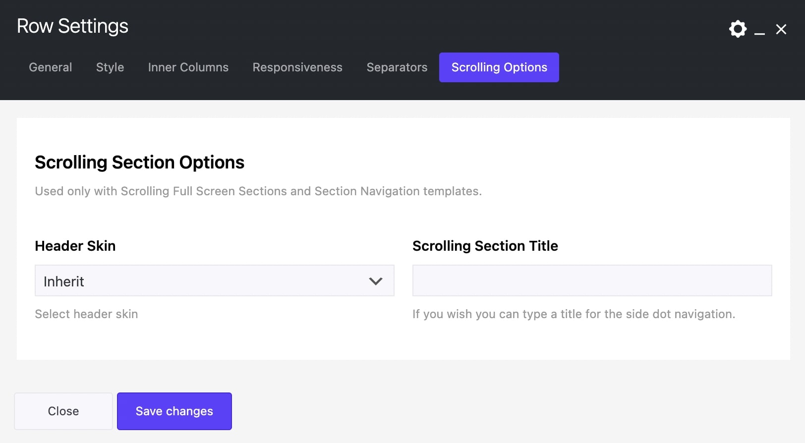 These options will take effect only if you use the Scrolling Full-Screen Sections template.
