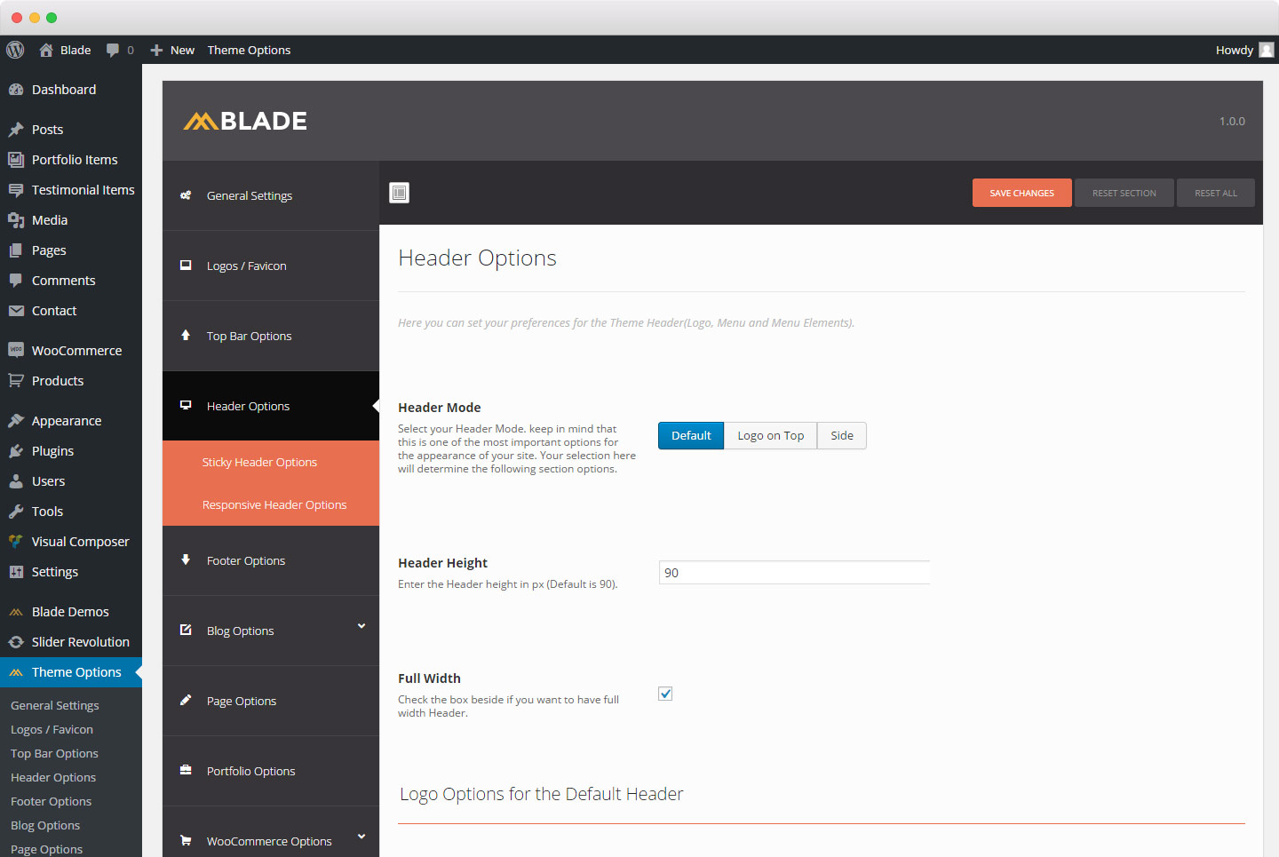 Blade’s main philosophy is that the user can have the power to make global settings from Theme Options on how to change the appearance of each Post format ( Pages/Posts/Portfolios) and in addition to be able to override almost everything through the Single Post formats (Pages/Posts/Portfolios). For example: Under Theme Options > Page Options you can select on whether you wish your Page header to overlap the content and select the Header Style you prefer (Default/Light/Dark). That means that the settings you will make will affect every single page of your site. In a creation of a Page, you have the ability to override this selection (as and most of them) and have one or multiple pages with custom individual settings. This is the Blade Magic!