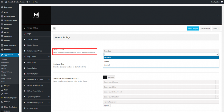 Movedo provides 3 different layouts you can select from in Theme Options > General Settings.