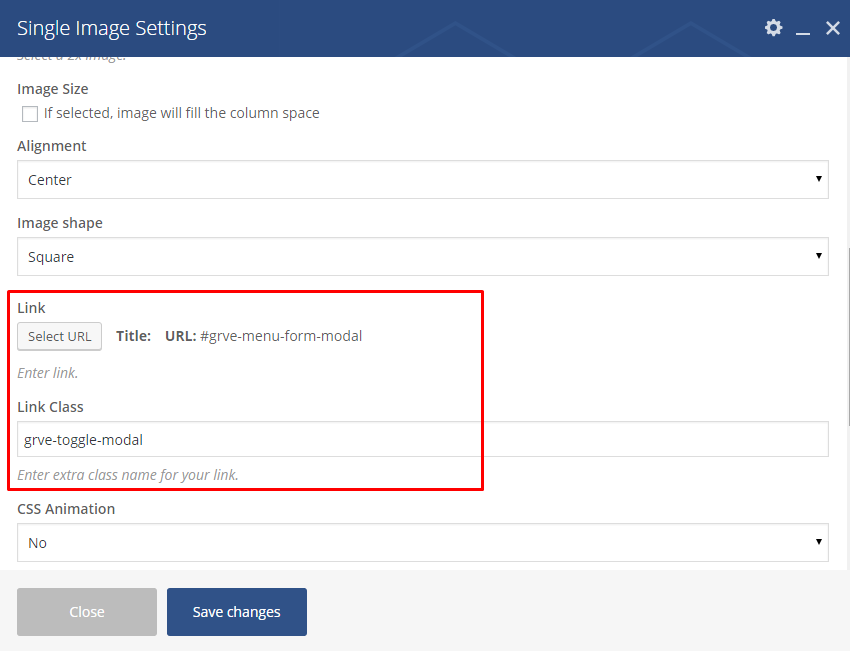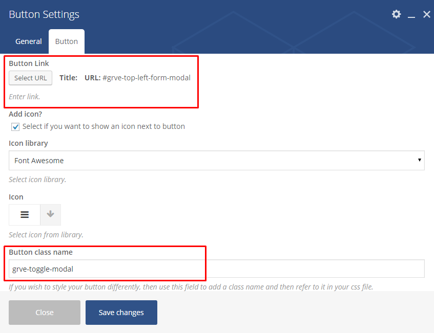 - Add the class grve-toggle-modal in the Button class name field